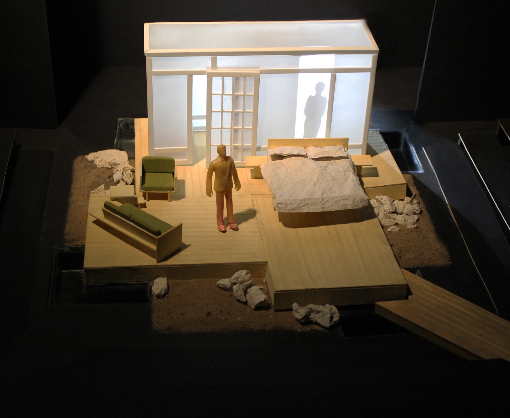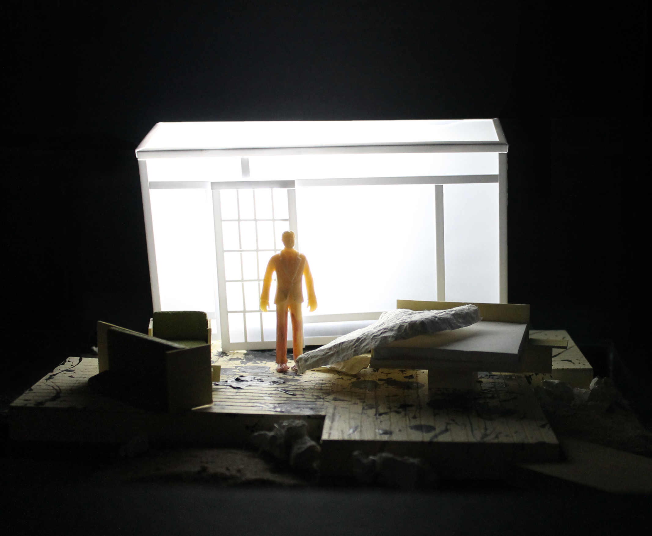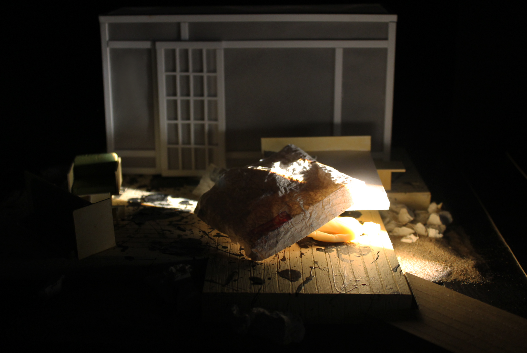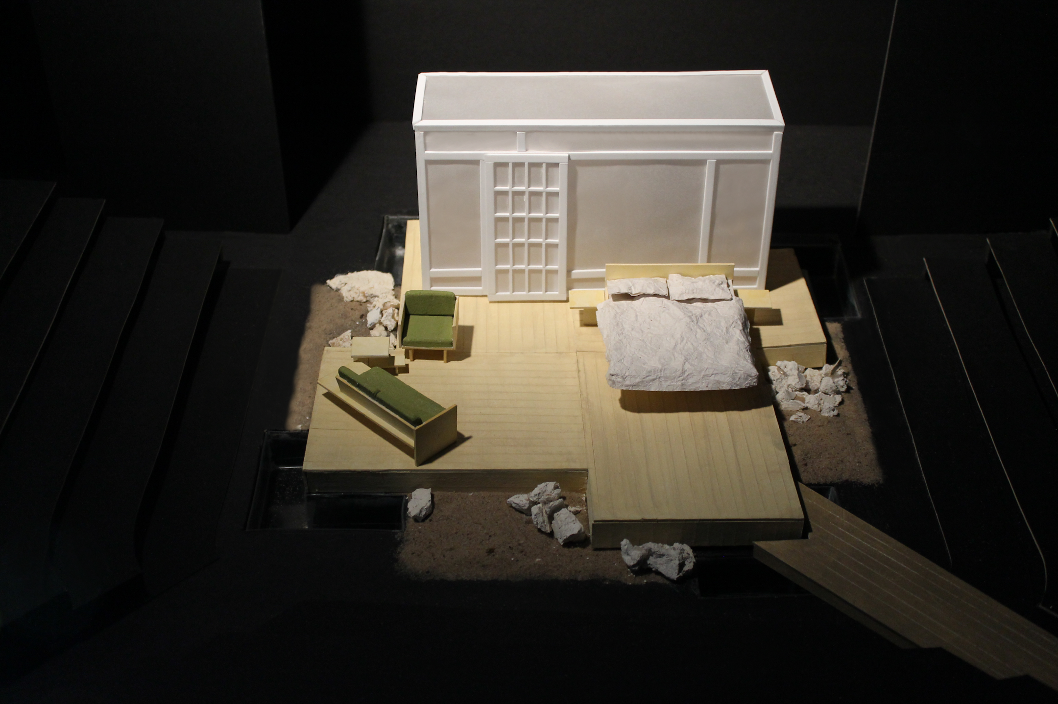 Focusing on a Japanese architecture style because of their importance to simplicity (emphasis to text), beauty and calmness (contrasted with the world of the play) and naturalism (they are in a room with no walls to protect them from the outside elements)